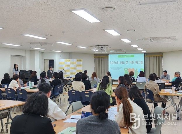 브릿지저널 김경미 기자 | 인천여성가족재단은 4월 28일 재단 소강당에서 전 직원을 대상으로 ‘2026년 ESG 전 직원 워크숍’을 열고, ESG 경영 내재화와 성과 중심 실행체계 구축 방안을 논의했다.