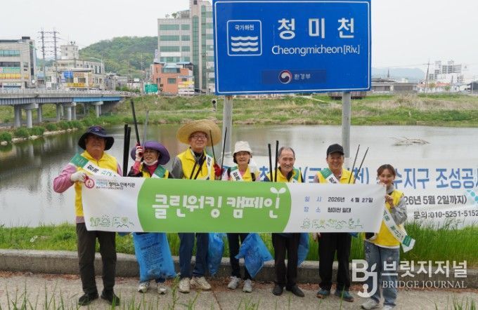 브릿지저널 김경미 기자 | 이천시는 이천시 청미노인복지관(관장 최대열)의 선배시민 자원봉사단 ‘그린이음’이 지난 4월 27일 청미천 일대에서 클린워킹, 일명 ‘줍깅’ 캠페인을 진행했다고 밝혔다.