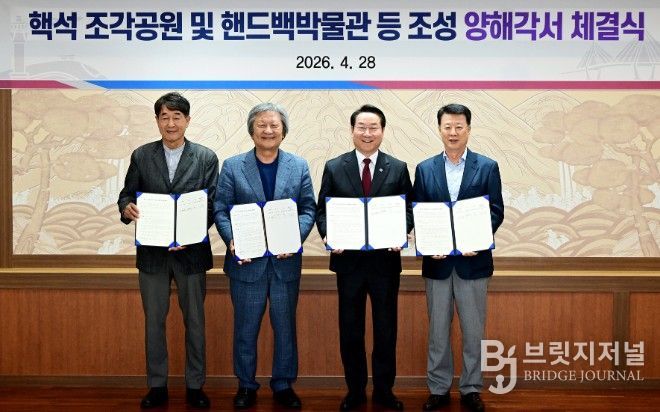 인천광역시는 4월 28일 인천시청 대접견실에서 조각가, ㈜시몬느, 블루코어PFV㈜와 ‘핵석 조각공원과 핸드백 박물관·핵석 전시관 조성’을 위한 양해각서를 체결했다.
