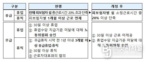 휴업, 휴직 등 유형별로 달리 정하고 있는 고용유지지원금 지원 요건은 ‘근로를 제공하지 아니하는 조치’로 통일된다. 복잡한 신청 요건을 단순화하여 현장의 이해와 활용도를 높일 수 있을 것으로 기대된다.