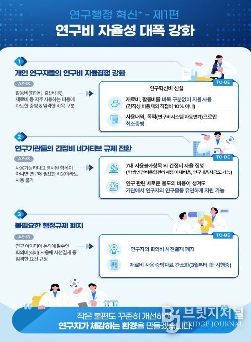 브릿지저널 김경미 기자 | 과학기술정보통신부은 4월 28일 국무회의에서 연구비 자율성 강화를 위한 「국가연구개발혁신법 시행령」 개정안이 의결됐다고 밝혔다.