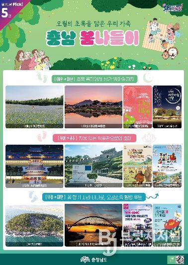 브릿지저널 정보영 기자 | 충남도는 5월 가정의 달을 맞아 황금연휴에 가족과 함께 1∼2일 일정으로 다녀오기 좋은 여행지를 담은 ‘월간 충남 5월호’를 발간했다.