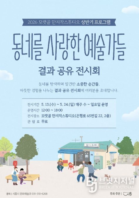 브릿지저널 김경미 기자 | 시흥시는 오는 5월 13일부터 24일까지 문화재생공간 모랫골 만지작스튜디오에서 2026년 상반기 프로그램 ‘동네를 사랑한 예술가들’ 결과 공유 전시를 개최한다.