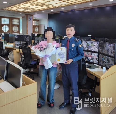 브릿지저널 정보영 기자 | 금산경찰서는 4.28. 오후 2시 신속한 112신고로 범죄를 사전에 예방하고 군민의 재산을 보호하는데 기여한 금산군 스마트도시 통합센터 CCTV관제요원에게 감사장을 수여했다고 밝혔다.