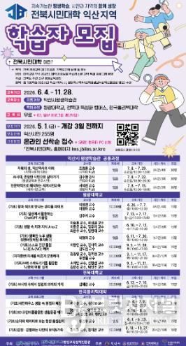 익산시는 오는 5월 1일부터 '2026년 전북시민대학 익산캠퍼스' 학습자를 모집한다고 29일 밝혔다.