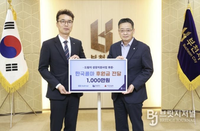 브릿지저널 김경미 기자 | 부천시는 지난 28일 한국콜마로부터 취약계층 아동 지원을 위한 후원금 1,000만 원을 전달받았다. 후원금 전달식에는 변성배 한국콜마 부천사업장 메이크업생산 그룹장과 남동경 부천시장 권한대행이 참석해 민관 협력의 의미를 더했다.