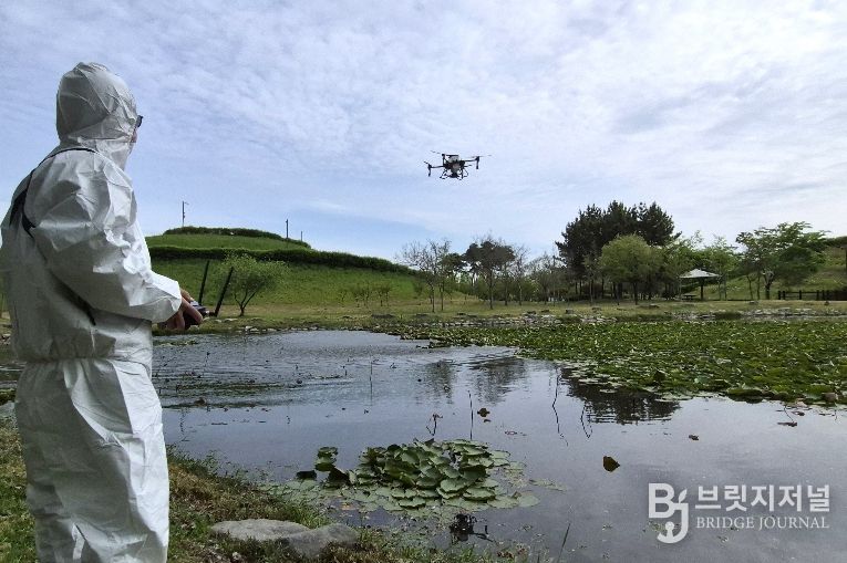 브릿지저널 김경미 기자 | 전남 나주시는 친환경 방역 약품과 첨단 드론 기술을 활용해 인력 접근이 어려운 호수공원 수면 등 방역 사각지대를 해소하고 시민들에게 쾌적한 환경을 제공하기 위해 드론 방역사업을 추진한다.