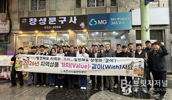브릿지저널 윤나영 기자 | 속초시시설관리공단(이사장 이선규)은 28일 속초관광수산시장에서 지역 소상공인 상생 프로젝트 '지역상품 가치(Value)·같이(With)사요'장보기 행사를 개최했다.