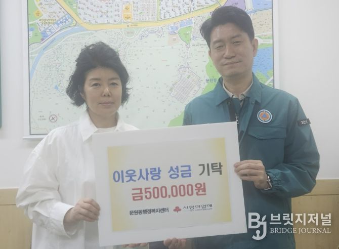 박재윤 문원동장은 “이번 기부는 재능을 바탕으로 한 나눔 실천이라는 점에서 의미가 크다”라며, “소중한 성금이 도움이 필요한 이웃들에게 잘 전달될 수 있게 하겠다”라고 밝혔다.