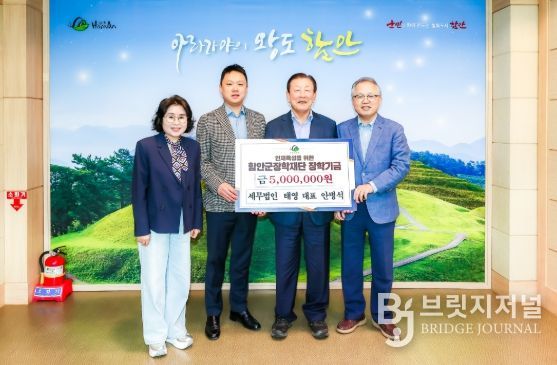 브릿지저널 김경미 기자 | 함안군은 지난 29일 창원시 마산합포구 산호동에 위치한 세무법인 태영(안병석, 안상희 공동대표)이 고향 함안을 위한 인재 육성에 힘을 보태기 위해 함안군장학재단에 장학금 500만 원을 기탁했다고 밝혔다.