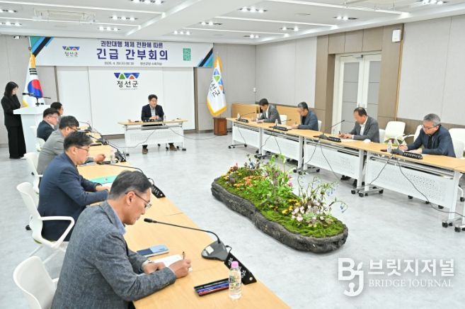 브릿지저널 윤나영 기자 | 정선군은 최승준 정선군수가 28일 제9회 전국동시지방선거 예비후보로 등록함에 따라 군정 공백을 최소화하고 주요 현안의 안정적인 추진을 위해 권한대행 체제로 전환하고, 이에 따른 긴급 간부회의를 개최했다.