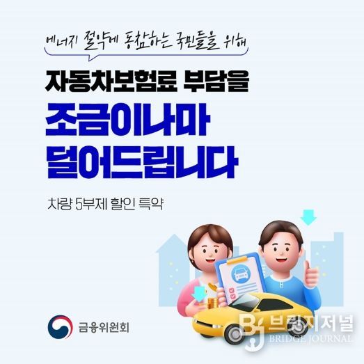 브릿지저널 김경미 기자 | 에너지 절약에 동참하는 국민들을 위해, 자동차보험료 부담을 조금이나마 덜어드립니다.