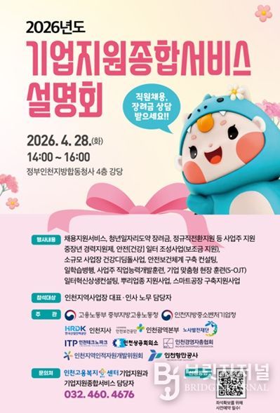 브릿지저널 김경미 기자 | 중부지방고용노동청은 인천지방중소벤처기업청 등 유관기관과 함께 4월 28일 오후 2시 정부인천지방합동청사에서 ‘기업지원 종합서비스’ 설명회를 개최했다.