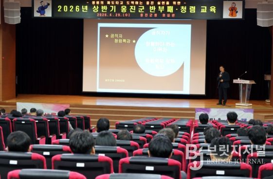 브릿지저널 김경미 기자 | 옹진군은 지난 29일 군청 효심관에서 전 직원을 대상으로 공직윤리 의식 고취를 위한 ‘2026년 상반기 공직자 반부패·청렴 교육’을 실시했다고 밝혔다.
