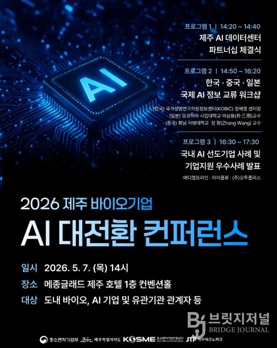 브릿지저널 정보영 기자 | 제주테크노파크(원장 지영흔, 제주TP)는 오는 5월 7일 오후 2시 메종글래드 제주 호텔에서 도내외 바이오 및 AI 산업 관계자 100여 명을 대상으로 ‘제주 바이오기업 AI 대전환(DX) 컨퍼런스’를 개최한다고 30일 밝혔다.