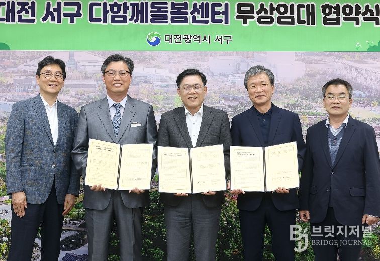 브릿지저널 정보영 기자 | 대전 서구는 구청 갑천누리실에서 돌봄 공백 해소 및 아동의 건강한 성장 환경 조성을 위해 다함께돌봄센터 공간 무상 임대 협약을 체결했다고 30일 밝혔다.