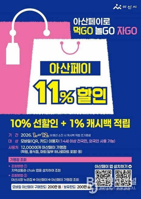 브릿지저널 정보영 기자 | 아산시는 한국조폐공사 제공자료를 토대로 2026년 3월 기준 지역화폐 아산페이 가맹점 수가 1만2,497개소, 총 가입자 수가 27만3,746명으로 집계됐다고 밝혔다.