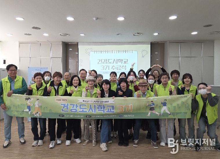 브릿지저널 김경미 기자 | 서울 서초구는 주민들의 일상 속 건강생활 실천문화를 확산하기 위해 운영한 ‘건강도시학교’ 3기 교육을 29일 마무리하고 서초구보건소 건강키움터에서 수료식을 개최했다고 밝혔다.