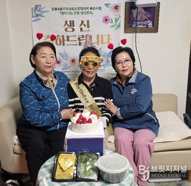 브릿지저널 김경미 기자 | 서울 성북구 정릉4동 지역사회보장협의체가 4월 특화사업 ‘찾아가는 은빛 생신잔치’를 처음 추진하고 관내 독거어르신 가정을 방문해 생신을 축하했다.