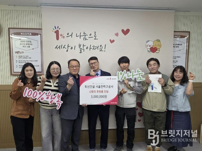 심윤식 복지국장은 “지역 어린이들을 위해 뜻깊은 나눔을 실천해 주신 두산건설 시흥전력구 현장의 관계자들에게 깊이 감사드린다”라며 “이번 후원이 어린이들의 건강한 성장 기반을 마련하는 데 도움이 되길 기대한다”라고 말했다.