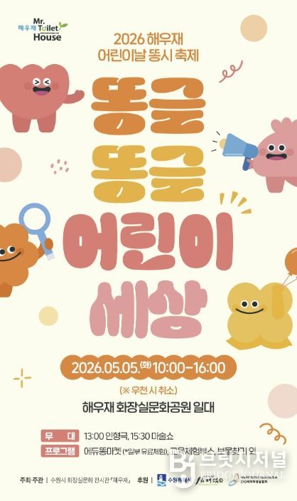 브릿지저널 김경미 기자 | ‘2026 해우재 어린이날 똥시 축제-똥글똥글 어린이 세상’이 5월 5일 오전 10시부터 오후 4시까지 해우재 화장실문화공원 일원에서 열린다.