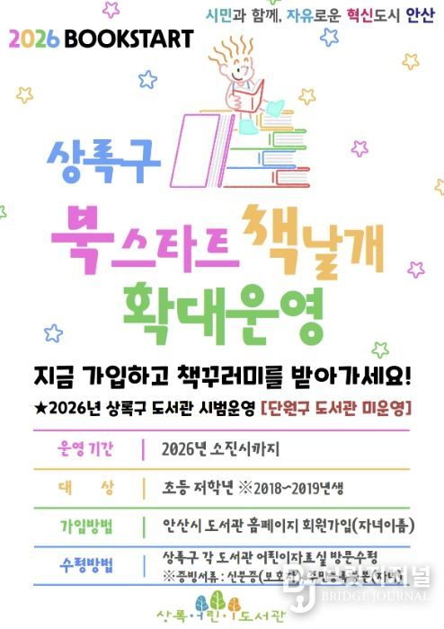 브릿지저널 김경미 기자 | 안산시는 상록구 소재 도서관에서 운영 중인 ‘북스타트 사업’ 대상을 기존 영유아에서 초등학교 저학년 학생까지로 확대한다고 30일 밝혔다.