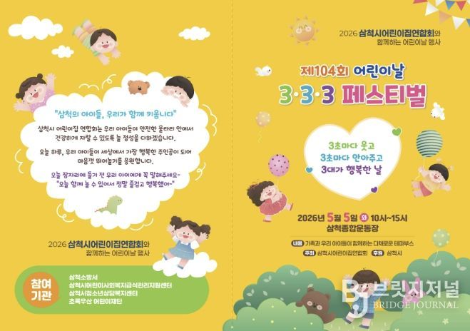 브릿지저널 윤나영 기자 | 삼척시는 제104회 어린이날을 맞아 어린이와 가족이 함께 즐길 수 있는 행사들을 개최한다고 밝혔다.