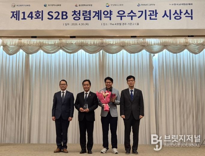 브릿지저널 김진석 기자 | 대구달성교육지원청은 한국교직원공제회가 주관하는 ‘제14회 S2B(학교장터) 청렴계약 우수기관’에 대구에서 유일하게 5년 연속 선정되어 30일 경주 The-K 호텔에서 열린 시상식에서 우수기관상을 수상한다.