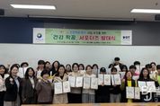 브릿지저널 정보영 기자 | 대전 서구는 27일 대전과학기술대학교 진리관에서 해당 학교 간호학과 측과 ‘반가워U 건강짝꿍 맺기’ 사업 추진을 위한 ‘건강짝꿍 서포터즈’ 발대식을 개최했다. 이번 발대식은 장기 입원 후 퇴원한 의료급여 수급자가 가정에서도 안정적인 생활을 유지할 수 있도록 지원하기 위해 마련됐다. 이날 자리에서는 해당 대학 간호학과 학생 22명이 ‘건강짝꿍 서포터즈’로 위촉됐다. 학생 2인 1조씩 총 10개 팀으로 구성된 서포터즈는 한 달에 두 번 재가의료급여 대상자 가정을 방문한다. 건강 체조, 보드게임, 상담 및 산책, 건강일지 작성 등 소통 활동을 통해 대상자의 인지기능 향상을 돕는다. 이 밖에도 전공 지식과 실무 역량을 바탕으로 지역사회 건강 문제와 관련된 다양한 활동을 펼칠 예정으로, 활동 기간은 올해 11월까지다. 안명옥 서구 주민복지국장은 “학생들에게 이번 활동이 인성과 실무 역량을 함께 함양하는 계기가 되길 바란다”며 “앞으로도 대학과의 협력을 강화해 맞춤형 의료급여 사업을 확대해 나가겠다”고 말했다.