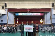 브릿지저널 김경미 기자 | NH농협 거제시지부(지부장 권경화)는 지난 10월 27일 오후 2시 거제시체육관에서 열린 제36회 경상남도생활체육대축전 거제시 선수단 결단식에서 거제시 선수단을 응원하기 위해 후원금 500만 원을 전달했다. 권경화 지부장은 “생활체육인들의 열정과 노력이 좋은 결실로 이어지길 바라는 마음으로 이번 후원을 준비했다”며, “거제시 선수들이 그동안 갈고닦은 실력을 마음껏 발휘해 좋은 성과를 거두길 기대한다”고 밝혔다. 김환중 거제시체육회장은 “NH농협 거제시지부의 변함없는 관심과 후원에 깊이 감사드린다”며, “그동안 흘린 땀의 결실이 빛날 수 있도록 끝까지 최선을 다해 준비하겠다”고 전했다.
