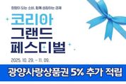 브릿지저널 김경미 기자 | 광양시는 전국 단위 소비진작 행사인 ‘코리아 그랜드 페스티벌(Korea Grand Festival)’ 기간(2025. 10. 29.~11. 9.) 동안 광양사랑상품권 할인율을 한시적으로 18%로 상향한다고 밝혔다. ‘코리아 그랜드 페스티벌’은 국무조정실, 기획재정부, 행정안전부, 산업통상자원부와 행정안전부, 문화체육관광부 등 관계 부처가 공동으로 추진하는 국가대표 소비축제다. 행사 기간에는 △지역사랑상품권 및 디지털온누리상품권 특별할인 △상생소비복권 (20억 원 규모) 신규 시행 △농·축·수산물·생필품 특별할인 △숙박쿠폰 발급 및 문화유산 무료 개방 등 국민 누구나 참여할 수 있는 다양한 소비 혜택이 제공된다. 이 기간 광양시는 총 40억 원 규모의 광양사랑상품권을 발행하며, 기본 13% 후(後) 캐시백에 5%를 추가해 총 18% 혜택(월 최대 12만 6천 원 적립)을 제공한다. 단, 예산 소진 시 조기 종료될 수 있으며 행사 종료 후에는 기존 13% 할인율로 조정된다. 시는 이번 특별할인을 통해 시민들이 실질적인 소비 혜택을 누리고, 지역 내 자금의 선순환이