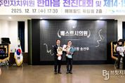 브릿지저널 김경미 기자 | 목포시의회 송선우(산정·대성·죽교·북항동) 관광경제위원장이 17일 에메랄드 웨딩홀 2층에서 열린 제8회 목포시 주민자치위원 한마음 전진대회에서 ‘목포시 주민자치위원회 베스트 시의원상’을 수상했다. 이 상은 목포시 주민자치위원장협의회가 수여한 것으로, 지역 주민과의 소통을 바탕으로 한 헌신적인 의정활동과 주민자치 발전에 기여한 공로를 인정해 마련됐다. 해당 상은 이번 회차에 처음 제정돼 송선우 위원장이 초대 수상자의 영예를 안았다. 송 위원장은 평소 탁월한 소통 능력을 바탕으로 주민들의 다양한 의견을 의정활동에 적극 반영해 왔으며, 특히 지역 현안 해결 과정에서 보여준 진정성과 열정으로 주민자치의 모범을 제시했다는 공로를 인정 받았다. 또한 주민 복지 향상과 지역 발전을 위한 실질적인 정책 추진에 힘써 왔다는 점에서 높은 평가를 받았다. 송선우 위원장은 수상 소감을 통해 “이 상은 개인이 아닌, 현장에서 함께 고민하고 노력해 온 주민자치위원 여러분과 시민들께서 주신 상이라고 생각한다”며 “앞으로도 주민의 목소리에 더욱 귀 기울이며, 주민자치가 지역 발전의 중심이