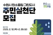 브릿지저널 김경미 기자 | 수원특례시가 ‘생활 속 탄소중립 실천’을 확산하기 위해 2월 12일부터 20일까지 탄소중립 그린도시 사업 대상지 주민·생활권자를 대상으로 ‘수원시 탄소중립 그린도시 주민실천단’ 신규 참여자를 모집한다. 주민실천단은 탄소중립 그린도시 사업 대상지 주민과 생활권자로 구성된 시민 참여 조직이다. 지역 내 탄소중립 실천 활동과 홍보, 주민 참여 활동 등을 한다. 특히 수원시는 올해 주민실천단을 70명 규모로 확대 운영할 계획이다. 지난해 운영 성과를 바탕으로 신규 참여자를 모집해 참여 기반을 넓히고, 일회성 캠페인을 넘어 생활 속 실천이 자연스럽게 이어지는 탄소중립 문화를 확산할 계획이다. 모집 대상은 고색동·오목천동·탑동·서둔동·호매실동·평동·평리동 일부 등 탄소중립 그린도시 사업 대상지 거주민과 해당 지역 생활권자다. 주민실천단은 자원봉사 형태로 활동하며 ▲생활 속 탄소 저감 실천 ▲지역 맞춤형 실천 활동 ▲탄소중립 실천 홍보 ▲분과 활동, 회의 ▲역량 강화 교육 등에 참여한다. 수원시는 탄소중립 그린도시 주민실천단 확대 운영에 맞춰 참여자 역량을 높이는 교육과