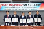 브릿지저널 김경미 기자 | 창원특례시는 30일 국회의원회관에서 ‘동대구–창원–가덕도신공항 고속화철도’의 제5차 국가철도망 구축계획 반영을 위해 추진 중인 범시민 서명운동(10.17.~11.16.)과 연계해, 사업 추진에 대한 공감대 확산을 위해 ‘동대구–창원 고속화철도 반영 촉구 국회토론회’를 개최했다. 이번 토론회는 윤한홍, 최형두, 김종양, 이종욱, 허성무 국회의원이 공동으로 주최하고 창원특례시가 주관해 ‘동대구-창원-가덕도신공항 고속화철도’의 필요성을 적극 알리고, 사업의 신속한 추진을 촉구하는 창원특례시민의 염원을 하나로 모으기 위해 마련됐다. 창원특례시 국회의원 5명은 “대한민국의 지속가능한 발전은 수도권과 비수도권이 균형 있게 성장하는 데서 시작된다”라며, ‘동대구–창원 고속화철도’가 그 목표를 달성하기 위한 핵심 사업임을 강조했다. 이어, “제5차 국가철도망 구축계획에 이 사업을 반드시 반영하고 조속히 추진할 것”을 한목소리로 강력히 촉구했다. 이날 행사에서는 ‘동대구-창원 고속화철도 반영 촉구 서명식’과 조속한 사업 추진을 염원하는 ‘피켓 세리머니’가 함께 진행되어, 참석자 모두가