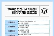 브릿지저널 김경미 기자 | 인천서구가족센터(센터장 심정흠)가 급증하는 1인가구의 사회적 고립을 예방하고 삶의 질을 높이기 위해 ‘2026년 1인가구 행복동행사업’의 본격적인 시작을 알리고 참여자 모집에 나섰다. 인천 서구는 최근 청라, 검단 신도시를 중심으로 1인 가구 비중이 급격히 증가하고 있는 지역이다. 이에 인천서구가족센터는 1인 가구의 라이프스타일을 반영해 경제, 건강, 심리 정서 등 실질적인 고민을 해결할 수 있는 다각적인 맞춤형 지원 체계를 구축했다. 올해 운영되는 프로그램은 참여자의 다양한 욕구와 생활 특성을 반영해 총 다섯 가지 테마로 구성되며, 재미와 전문성을 동시에 갖춘 맞춤형 프로그램으로 운영될 예정이다. 먼저, ▲프로소통러는 중장년 1인 가구 간 유대감 형성과 사회적 관계망 확장을 위해 동아리 활동을 지원하는 프로그램으로 참여자들이 서로 소통하고 교류할 수 있는 기반을 마련한다. ▲프로집밥러는 건강한 식생활 형성을 목표로 요리코칭과 식재료 활용 교육을 제공해 일상 속 균형 잡힌 식습관을 돕는다. ▲프로머니러는 경제적 자립과 안정적인 노후 설계를 지원하기 위한 자산 관리 교육을 통해 참여자의 재무 역량을