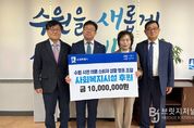 브릿지저널 김경미 기자 | 수원시민의료소비자 생활협동조합이 “도움이 필요한 취약계층과 사회복지시설에 전달해 달라”며 수원시에 1000만 원을 기부했다. 수원시는 기부금을 취약계층과 노인복지관, 장애인복지시설 등 관내 사회복지시설(단체)에 지원할 예정이다. 27일 수원시청 제1부시장 집무실에서 열린 전달식에는 김현수 수원시 제1부시장과 노인복지과장, 한창선 수원시민의료소비자생활협동조합 대표이사 등이 참석했다. 한창선 이사장은 “지역사회 복지 증진에 조금이나마 도움이 되길 바란다”며 “앞으로도 지속적인 나눔 활동으로 지역사회에 이바지하는 조합이 되겠다”고 말했다. 김현수 제1부시장은 “따뜻한 나눔을 실천해 주신 수원시민의료소비자 생활협동조합에 깊이 감사드린다”며 “수원시는 복지사각지대를 해소하고, 실질적인 지원이 이뤄지도록 최선을 다하겠다”고 밝혔다. 수원시민의료소비자 생활협동조합은 지난해에도 사회복지시설 지원을 위해 1000만 원을 기부한 바 있다. 저소득층 시민을 대상으로 무료급식, 라면 등을 후원하는 등 꾸준히 나눔을 실천하고 있다. 2016년 설립된 수원시민의료소비자 생