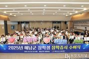 브릿지저널 김경미 기자 | 재단법인 해남군교육재단(이사장 명현관)은 지난 28일 해남군청 대회의실에서 2025년 해남군 장학생 장학증서 수여식을 가졌다. 수여식에서는 2025년 각 분야 해남군 장학생으로 선발된 우수학생 474명에게 총 4억 5,500만원의 장학금을 지원한다. 이날 수여식에는 장학생 대표 78명과 관계자들이 참석하여 자리를 빛냈다. 식전 공연으로 예체능 분야 장학생으로 선발된 한국무용창작팀과 태권도 시범팀이 수준 높은 공연을 선보이기도 했다. 2025년도 장학금 대상자는 성적우수 장학생 75명, 기능영재 장학생 30명, 희망장학생 71명, 예체능, 과학 등 특기자 장학생 117명, 기타 장학생 10명 등이다. 특히 초등학력인정학교 만학도 23명에게 배움의 도전을 응원하는 장학금과 타지역 전학, 지역사회공헌, 농어업인 육성, 꿈드림 등 50명에게도 맞춤형 장학금이 지원됐다. 대학생 98명에게도 생활지원금 성격의 장학금이 지원됐다. 이날 수여식에서 명현관 군수는“장학금은 여러분의 꿈과 열정을 해남군민 모두가 응원하는 증표”라며“학생들이 경제적 걱정없이 학업에 전념하여 해남의