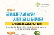 브릿지저널 김진석 기자 | 국립대구과학관(관장 이난희)은 시민의 시각에서 과학관 전시와 교육 프로그램, 관람 서비스를 체험하고 개선 의견을 제안하는 시민 참여 프로그램 ‘사이언트리 프렌즈 4기’를 모집한다. ‘사이언트리 프렌즈’는 시민이 직접 국립대구과학관 프로그램을 체험하고 모니터링 활동을 통해 다양한 의견을 제안하는 국립대구과학관 시민 참여 프로그램으로, 과학관 운영과 서비스 품질 향상을 위해 운영되고 있다. 이번 국립대구과학관 사이언트리 프렌즈 4기 모집은 3월 12일부터 3월 26일까지 진행되며, 대구·경북 지역 대학생 및 시민을 대상으로 15명 내외로 선발할 예정이다. 선발된 모니터링단은 2026년 4월부터 11월까지 약 8개월간 국립대구과학관 전시·교육·행사 등을 체험하며 관람 환경과 서비스에 대한 의견을 제시하는 활동을 수행하게 된다. 국립대구과학관 시민 모니터링단 ‘사이언트리 프렌즈 4기’ 활동참여자에게는 전시관 무료 관람(본인 및 동반 3인), 무료 주차 혜택이 제공되며, 활동 완료 시 수료증과 기념품이 지급된다. 또한 우수 활동자에게는 우수활동 표창이 수여될 예정이다.
