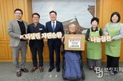 브릿지저널 윤나영 기자 | 전북특별자치도의회는 18일 의장실에서 하나예술창작센터의 장애인 예술 창작활동 지원과 노후 시설 보완 등에 활용해 달라며 기부물품 바자회 수익금 330만 원을 전달했다. 이번 전달식은 지난달 21일 도의회 현관 앞에서 전북특별자치도의회와 아름다운가게 전북본부가 함께 의원 및 사무처 직원들의 물품을 기부받아 진행한 바자회 판매 수익금을 모아 소외된 이웃을 돕기 위해 마련됐다. 문승우 의장은 “의원들과 직원들이 기부한 물품이 다시 지역사회에 따뜻한 나눔으로 돌아간다는 점에서 의미가 크며, 자원순환 캠페인에도 함께 동참할 수 있어 더욱 뜻깊다”며, “행사에 참여해 주신 의원님들과 직원분들게 감사드리며 앞으로도 도민과 함께하는 사회공헌 활동을 이어가겠다”고 말했다. 수익금을 전달받은 전해진 센터장은 “도의회의 따뜻한 나눔이 어려운 이웃에게 큰 힘이 될 것”이라며 “전달된 기금은 장애인 예술가들의 창작활동에 필요한 물품 지원과 노후 장비 보완에 소중하게 사용하겠다.”고 말했다.
