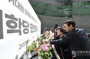 브릿지저널 윤나영 기자 | 남원시가 23일, 지역 교육의 거점이 될 남원 인재학당 ‘만인재’의 상량식(上樑式)을 거행하며 2027년 개원을 위한 막바지 건립 공사에 속도를 내고 있다. 이번 상량식은 건물의 골조를 완성하고 4층 한옥 지붕의 가장 높은 곳에 대들보를 올리는 행사로, 무사 준공을 기원하는 동시에 남원 교육의 기틀을 바로 세우고 인재 양성의 의지를 다지는 상징적 의미를 담아 진행됐다. 현재 건립 중인 ‘만인재’는 총사업비 200억 원이 투입되어 연면적 3,239㎡, 지상 4층 규모로 조성된다. 내부에는 강의실, 온라인학습실 등 지역 최고 수준의 교육 시설이 들어설 예정이다. 이날 행사의 하이라이트인 상량문에는 ‘학성적공 인탁성기(學成積功 人琢成器)’라는 문구가 대들보에 새겨졌다. 이는 ‘배움은 쌓여 공을 이루고, 사람은 다듬어져 그릇이 된다’는 뜻으로, 만인재가 아이들을 훌륭한 인재로 길러내는 ‘탁마(琢磨)의 장’이 되길 바라는 염원을 담았다. 또한 상량문 양 끝에는 학생들의 밝은 앞날을 축원하는 ‘용(龍)·귀(龜)’자와 ‘등용지문(登庸之門)’을 적어 넣어 그 의