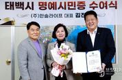 브릿지저널 윤나영 기자 | 태백시는 지난 24일 김진석 ㈜한솔라이프 대표를 태백시 명예시민으로 위촉했다고 밝혔다. 김진석 대표는 고향 태백에 대한 깊은 애정과 관심을 바탕으로 꾸준한 나눔 활동을 이어오며 지역사회 발전에 기여해 왔다. 특히 태백시 경로당과 저소득 취약계층 가구에 전기매트 3,040개(약 2억 6천만 원 상당)를 기탁하며 지역 어르신과 취약계층의 겨울철 난방 지원에 힘을 보탰다. 또한 강원도 내 2019년 고성·속초 산불, 2020년 울진·삼척 산불, 2023년 강릉 산불 당시에도 후원 물품을 지원하는 등 재난 피해 복구를 위한 나눔을 실천해 왔다. 김진석 대표는 “태백시 명예시민으로 선정되어 매우 뜻깊고 감사하다”며 “고향 태백의 발전을 늘 응원하며, 앞으로도 지역사회를 위한 나눔과 지원을 지속해 나가겠다”고 말했다.