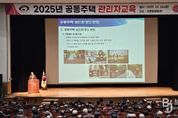 브릿지저널 정보영 기자 | 천안시는 16일 성환문화회관에서 천안시 의무관리대상 공동주택 334개 단지의 방범책임자와 시설물 안전관리책임자 650여 명을 대상으로 공동주택관리자 교육을 실시했다. 이번 교육은 최근 공동주택 환경 변화에 따른 주민 안전 확보와 화재 발생시 대응 능력 강화를 위해 소방안전교육 및 방범교육으로 진행됐다. 주요 교육 내용은 공동주택 보안환경 변화를 주제로 한 기계경비실무와 전기차 화재 대응, 공동주택 내 화재예방 및 대응 등으로 구성됐다. 시 관계자는 “공동주택 관리자 교육에 대한 관심과 열기가 어느 해보다 높았다”며 “향후 천안시 공동주택의 보안과 안전 관리운영에 기여할 것으로 기대된다”고 말했다.