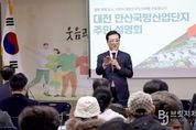 브릿지저널 정보영 기자 | 대전시의회 조원휘 의장은 16일 노은2동 행정복지센터에서 개최된 안산 국방산업단지 주민설명회에 참석해 국방산업 중심도시 대전을 이끌 안산 국방산업단지가 차질 없이 조성될 수 있도록 의회가 함께할 것을 약속했다. 안산 국방산업단지는 48만 평, 총 1조 4천억 원이 투입되는 대전의 미래 국방·첨단산업 핵심 프로젝트로, 이날 주민설명회는 사업개요, 그동안 추진 상황, 보상절차 및 시기 등 향후 계획 순으로 진행됐고, 소관부서의 설명이 끝난 뒤에는 주민들의 자유로운 질의응답 시간으로 이어졌다. 조원휘 의장은 “오늘 이 자리는 오랫동안 기다려온 주민 여러분께 사업이 어디까지 진행됐는지, 무엇이 달라졌는지를 분명히 설명드리는 자리”라며, “이제는 ‘될지 안 될지’를 걱정하는 단계가 아니라, ‘어떻게 제대로 추진할 것인가’를 논의해야 할 단계”라고 말했다. 이어 “내년 3~4월경 도시공사의 지분 참여에 대한 시의회 심의와 개발제한구역 해제 고시가 이뤄지고, 6~7월경 산업단지계획 승인 절차가 정상적으로 진행된다면, 그동안 지연됐던 보상과 착공 절차도 본격적으로 시작될 것”이라며, “앞으로 도시공