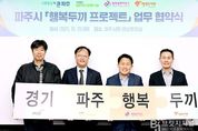 브릿지저널 김경미 기자 | 파주시는 ㈔딜로이트한마음나눔, 행복나래㈜, 행복도시락 사회적협동조합과 함께 결식 우려가 있는 외국인 노동자 자녀 지원을 위한 ‘행복두끼 프로젝트’업무협약을 체결했다고 밝혔다. 이날 협약식에는 최병갑 파주시 부시장을 비롯해 ㈔딜로이트한마음나눔 유병문 상임이사, 행복나래㈜ 조민영 본부장, 행복도시락 사회적협동조합 최준 사무국장 등 관계자들이 참석해, 아동복지 향상을 위한 상호 협력체계를 구축하기로 뜻을 모았다. 이번 협약을 통해 파주시는 결식 우려 아동을 추천하고, ㈔딜로이트한마음나눔, 행복나래㈜와 행복도시락 사회적협동조합은 해당 아동을 대상으로 도시락을 후원·제작·배송하는 역할을 맡게 된다. 이번 협약을 계기로 파주시 내 결식이 우려되는 외국인 노동자 자녀 40명이 지원을 받게 됐으며, ‘아프리카 10개국 이주민 노동자 공동체’는 해당 아동들이 정기적으로 도시락을 제공받게 된 것에 대해 깊은 감사의 마음을 전했다. 최병갑 파주시 부시장은 “파주시가 행복두끼 프로젝트 사업에 참여하게 되어 뜻깊다”라며 “앞으로도 지역사회 내 어려움을 겪는 아동들에게 희망을 전하는 따뜻한 사업이