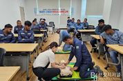 브릿지저널 김경미 기자 | 고성군은 9월 22일, 관내 외국인 근로자들의 산업현장에서의 안전사고 예방을 위해 외국인 근로자를 대상으로 안전사고 예방교육을 실시했다고 밝혔다. 이번 교육은 고성소방서와 SK기술교육원의 협조로 진행됐으며, 관내 SK오션플랜트 기술교육원에서 조선관련 교육을 받고있는 스리랑카 외국인근로자 16명을 대상으로 화재 발생시 대피요령 및 소화기 사용방법과 심폐소생술 등 응급처치 등을 중심으로 진행됐다. 본 교육은 고성군 관내 외국인 근로자의 산업현장 적응과 지역정착을 지원하기 위하여 운영되고 있는 ’외국인 근로자 지역정착 프로그램‘의 일환으로, 외국인 근로자들에 대한 한국어 교육과 연계하여, 외국인근로자의 언어·문화적 차이로 인해 발생할 수 있는 안전사고를 사전에 예방하고, 현장대응능력을 높이기 위해 마련됐다 이주열 경제기업과장은 “이번 교육을 통해 산업현장에서의 화재 및 안전사고 예방과 대처능력이 향상 될 것으로 기대되며, 최근 발생하는 외국인근로자의 산업재해사고와 같은 재난도 줄일 수 있을 것으로 보인다”라며, “앞으로도 더 많은 기업체의 외국인 근로자들에게 한국어 교육과 병행하여 안전사고