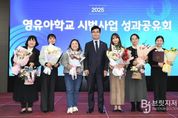 브릿지저널 김경미 기자 | 충청북도교육청은 12일, 청주 엔포드호텔에서 '2025. 영유아학교 시범사업 성과공유회'를 성황리에 개최했다. 영유아학교 시범사업 운영 성과를 공유하고, 영유아의 온전한 성장과 발달을 지원하기 위한 현장 중심의 소통과 성찰의 장으로 마련됐다. 이날 행사에는 충북교육청 및 육아종합지원센터 관계자, 영유아학교 시범학교 및 시범사업 운영 기관 교직원 등 약 200명이 참석하여 시범사업 운영 경험을 공유하고 발전 방향을 함께 모색했다. 특히, 변혜경 국공립유치원연합회장, 이옥주 사립유치원연합회장, 성락준 어린이집연합회장이 모두 참석하여 영유아학교 시범사업 운영에 관심을 보였다. 행사는 시범학교 운영기관인 예광유치원 유아들이 선보인 난타공연으로 시작됐으며, 이어 영유아교육 정책 추진에 기여한 교직원에게 유공 표창을 전달했다. 박창현 육아정책연구소 연구원은 '유보통합, 질적 전환의 관점에서 다시 묻다: 최상의 교육‧보육이란 무엇인가?'를 주제로 특강을 진행했으며, 영유아교육의 질 제고와 보육‧교육의 조화로운 방향성에 대해 시사점을 제시했다. 이어, ▲언제나 책봄 이음책
