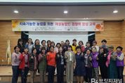 브릿지저널 윤나영 기자 | 장수군은 전북특별자치도 부안군 일원에서 한국여성농업인 장수군연합회 주관으로 ‘여성농업인 역량강화 교육’을 성황리에 마쳤다고 3일 밝혔다. 이번 교육은 안옥순 회장을 비롯한 회원 32명이 참석한 가운데 여성농업인의 전문 역량을 강화하고 지속가능한 농업 실현을 위한 경쟁력 향상을 목표로 진행됐다. 특히 한국여성농업인 중앙연합회 김향숙 회장이 직접 현장을 방문해 회원들을 격려하고 교육 분위기를 북돋았다. 교육은 △FTA 현황 및 지속가능한 농업의 이해 △농업 관련 법률적 검토 기법 △경영계획 수립 방법 및 사업평가 기법 등 실무 중심의 내용으로 구성됐다. 이를 통해 농업 정책과 제도에 대한 이해를 넓히고, 농업경영에 필요한 전문 지식과 현장 문제 해결 역량을 함께 키울 수 있는 뜻깊은 시간이 됐다. 이번 교육은 여성농업인들이 농업의 주체로서 지역농업 발전에 참여할 수 있는 동기를 부여하는 계기가 됐으며, 지속가능한 농촌사회를 만들기 위한 네트워크 형성에도 긍정적인 영향을 줬다. 참석자들은 “농업인의 입장에서 쉽게 접하기 어려운 전문 교육을 받을 수 있어
