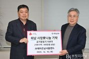 브릿지저널 김경미 기자 | 지난 16일 ㈜동우씨엠에스는 하남시에 매월 100만원을 정기 기탁하며, 2025년 12월 누적 성금 2,500만원을 달성하여 기탁식을 가졌다. 이날 기탁식에는 이현재 하남시장과 ㈜동우씨엠에스 신동주 대표가 참석했다. ㈜동우씨엠에스는 하남시 미사3동에 위치한 건축자재 내·외장재 제조 및 도소매 기업으로 2023년 11월부터 ‘하남 사랑愛나눔’성금으로 매월 100만원을 정기 기탁해오고 있다. 기탁된 성금은 취약계층 10가구에 매월 가구당 10만원씩 지원돼 대상 가구의 생계 유지에 보탬이 되고 있다. 신동주 대표는 “어려운 이웃과 매월 조금씩 나눈다는 마음으로 기부를 시작한 지 2년이 돼 더욱 의미가 크다”며, “앞으로도 지역사회와 함께하는 나눔을 계속하겠다”라고 기탁 소감을 밝혔다. 하남시 관계자는 “꾸준한 기탁으로 따뜻한 온기를 전해주신 ㈜동우씨엠에스에 감사드리며, 어려운 이웃들이 일상을 이어가는 데 큰 힘이 되고 있다”라고 감사 인사를 전했다.