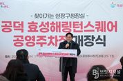 브릿지저널 김경미 기자 | 박강수 마포구청장은 12월 3일 오후 5시, 공덕역 10번 출구 앞 광장에서 열린 ‘공덕 효성해링턴스퀘어 공영주차장 개장식’에 참석해 시설 개장을 축하했다. 이번에 문을 연 공덕 효성해링턴 스퀘어 공영주차장(도화동 25-13)은 총 21면 규모로 조성된 거주자우선주차장으로, 구는 공공기여를 통해 확보한 이 공간을 주민들에게 개방해 운영하기로 했다. 아파트와 상가, 오피스가 밀집한 도화동·공덕동 일대는 주차 수요에 비해 공간이 부족해 주민과 방문객 모두가 지속적인 불편을 겪어 왔다. 이번 공영주차장 운영을 통해 지역에서 꾸준히 제기돼 온 주차 불편이 상당 부분 해소될 것으로 기대되며, 생활권 내 주차 편의도 한층 개선될 전망이다. 행사는 식전 공연을 시작으로 개회 및 내빈소개, 경과보고에 이어 박강수 마포구청장의 기념사가 진행됐으며, 이어 테이프 커팅과 기념촬영 후 시설 라운딩이 이어졌다. 추운 날씨 속에서도 박강수 마포구청장을 비롯해 백남환 구의회 의장, 지역 주민 등 약 100여 명이 참석해 주차 공간 확충의 성과를 함께 축하했다. 박강수 마