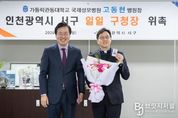 브릿지저널 김경미 기자 | 인천 서구가 지난 19일 가톨릭관동대학교 국제성모병원 고동현 의료원장 겸 병원장을 ‘일일 구청장’으로 위촉했다. 이번 일일 구청장 위촉은 지역 대표 의료기관과의 소통과 협력으로 주민 건강 증진과 지역 발전을 위해 마련됐다. 고동현 병원장은 이날 서구청사를 방문해 강범석 서구청장으로부터 일일 구청장 위촉장을 받고 간부 공무원과의 티타임을 시작으로 ‘일일 구청장’으로서 다양한 일정을 소화했다. 고동현 병원장은 첫 공식 일정으로 2026년 적십자 특별회비 전달식에 참여해 강범석 서구청장과 함께 적십자 특별회비 200만 원을 대한적십자사에 전달했다. 이어 청사 내 주요 행정 현장을 둘러보며 행정 운영을 직접 살폈다. 민원실을 방문해 여권 교부 업무를 직접 체험했으며, CCTV 통합관제센터와 악취·미세먼지 통합관제센터를 방문해 운영 현황을 청취하고 근무 중인 직원들을 격려하기도 했다. 마지막으로 고 병원장은 서구보건소를 방문해 보건소장으로부터 보건소 운영 현황을 듣고 보건소 주요 시설을 둘러봤다. 고동현 병원장은 “평소 쉽게 접하기 어려운 구청